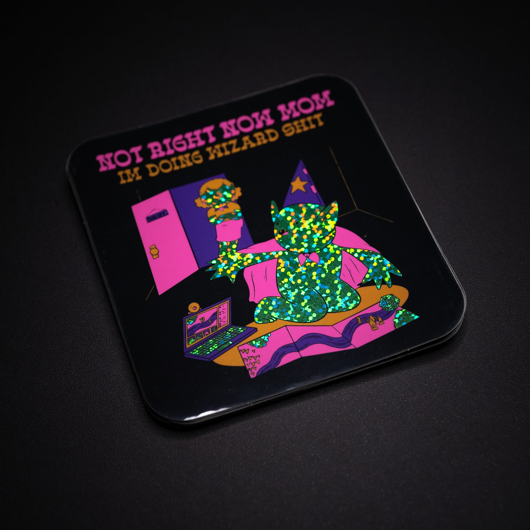 Je kunt zelfs neonroze details printen MET een holografisch effect, je moet misschien je zonnebril tevoorschijn halen voor deze. We weten dat onze reguliere witte en CMYK-kleurenafdrukken behoorlijk gaaf zijn, maar onze nieuwe neonroze inkt kan je echt omver blazen.