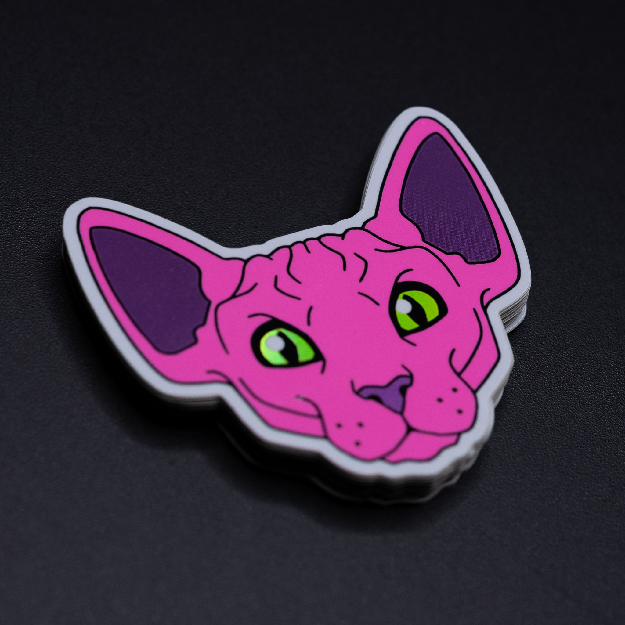 De roze inkt verliest wat van zijn 'pop' wanneer het wordt afgedrukt op materialen zoals holografisch of glitter, dus we raden aan om het te gebruiken als een vlakke kleur in je ontwerpen, of alleen op delen van je speciale materiaalsticker zodat je nog steeds het meeste haalt uit die schokkende neonkleur EN het effect van je materiaal.