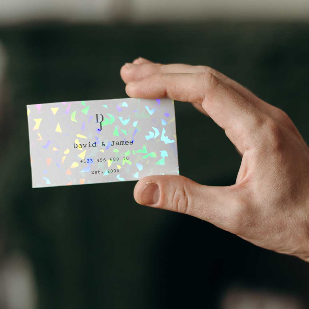 Op deze manier zullen de platte kleurgedeelten je onzichtbare ontwerp of boodschap tonen en zullen de andere details op je sticker schitteren met onze speciale effecten zoals holografisch of glitter.