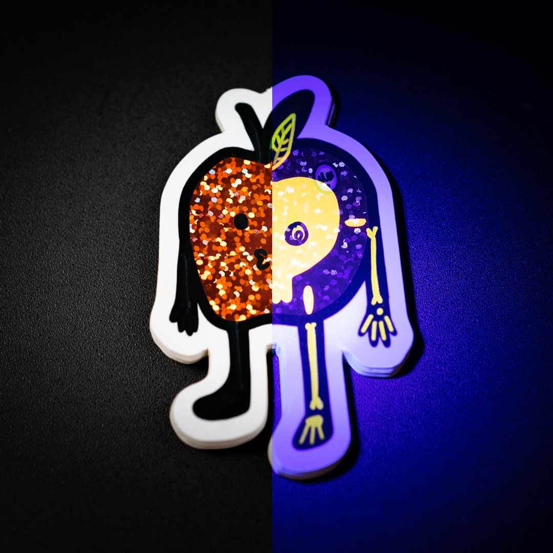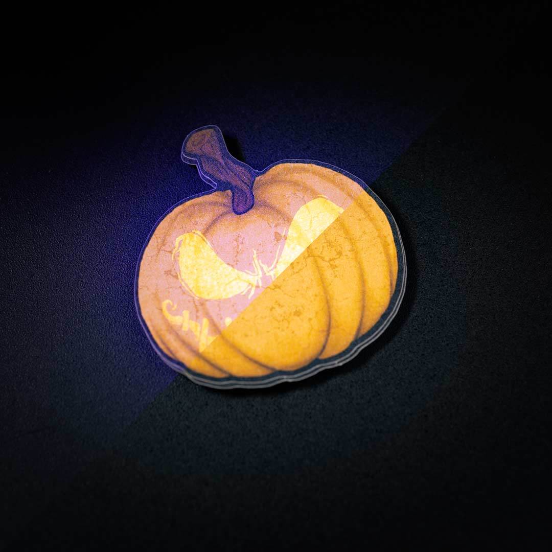 Voeg een extra onzichtbare laag toe bij het maken van je sticker met ontwerpdetails, verborgen boodschappen, codes of alles wat je niet meteen wilt laten zien of in daglicht zichtbaar wilt maken – alleen onder UV-licht.