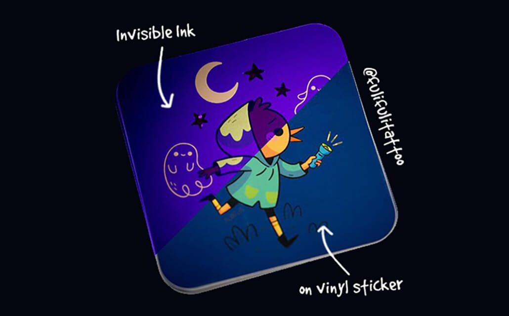 Ready to hold the title of the best trick-or-treat house in the neighborhood? Skip the candy and pass out Halloween stickers with invisible ink. This special ink appears under black light, so pass out stickers with a small black light flashlight for memorable stickers the kids will be talking about all year.