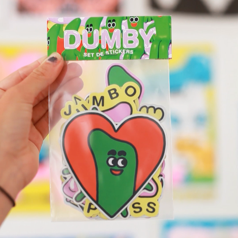 Inspired by the "magic verse” of childhood toys, Jumbo Press and Pablo Orrego collaborated on this set of vibrant, playful “Dumby” stickers. With a mix of materials and effects, this pack is a great example of how custom sticker packs come to life!