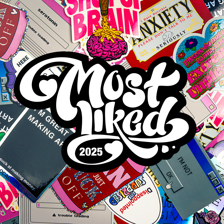 De top 12 stickerontwerpen van 2025 zijn gedurfder, luider en gekker dan ooit tevoren. Want als 2025 ons iets heeft geleerd, dan is het wel dat we collectief moe zijn, vreemd genoeg hoopvol en absoluut klaar zijn met doen alsof dat niet zo is.